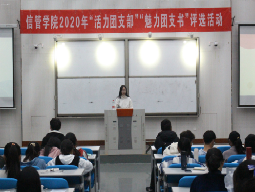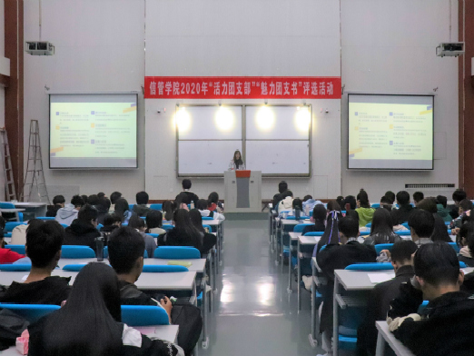 首先,在主持人的宣布下“活力团支部”评选活动正式开始。20位团支部负责人有序上台进行PPT内容展示,他们就支部简介、思想建设、团体活动、学风建设四个主要内容向大家展示本支部的发展特色,同学们在负责人的精彩讲解中深刻了解到各团支部的特色之本、活力之源。随后,11位参赛团支书开始了“魅力团支书”的个人PPT展示环节,各团支书从个人为班级所做的贡献、个人所获荣誉及证书、个人能力性格分析、个人思想学习发展情况四个方面向大家展示自己的个人魅力,同学们纷纷表示要向各位优秀的团支书们看齐,争做一名积极向上、团结奋进的新时代青年。最后,王肖肖对此次活动进行了总结发言,他向大家说明了举办此次活动的背景和目的,希望大家争取把每一个团支部建设成一个和谐美好的大家庭,团结友爱、共同进步。
