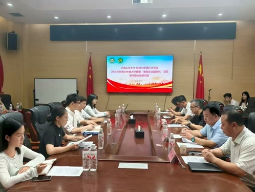 本网讯(通讯员 张玥 温翱宇)8月2日,我院于繁塔楼A405会议室召开2025年暑期“智慧农业国际化”项目研学团赴新西兰林肯大学学习交流行前培训会。校国际交流与合作处处长屠克、校党委学工部部长徐峰、体育学院院长唐大鹏莅临现场,院长陈振、副院长赵亚芳出席会议,院团委书记张玥、项目带队老师田康、研学项目合作企业代表刘畅及2025研学团全体成员参加本次培训会。会议由张玥主持。