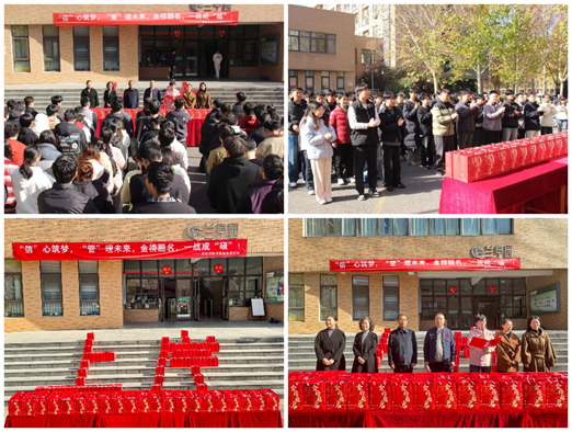 活动伊始,蔡镔向全院鏖战研途的2026届毕业生们致以最恳切的祝愿。随后,院长陈振向考研学子们送上饱含期许的寄语。他鼓励学子们在备考冲刺的关键阶段,一要坚定信念,相信自己,放下包袱,在逐梦路上坚定前行、不负韶华;二要张弛有度,稳中求进,科学规划时间,高效利用剩余备考周期,实现能力稳步提升;三要兼顾身心平衡,注重劳逸结合,以饱满的精神状态和强健的体魄迎接考试挑战。学院领导与老师们亲手将精心筹备的“考研暖心大礼包”送到学子手中,礼包里的每一份物资都承载着学院对考研学子的深切关怀与全力支持。接过这份温暖与期许,考研学子们脸上洋溢着欣慰的笑容,他们纷纷表示将把学院的关怀转化为备考的强大动力,以更坚定的决心、更饱满的热情投入到后续复习中,全力以赴冲刺目标院校。